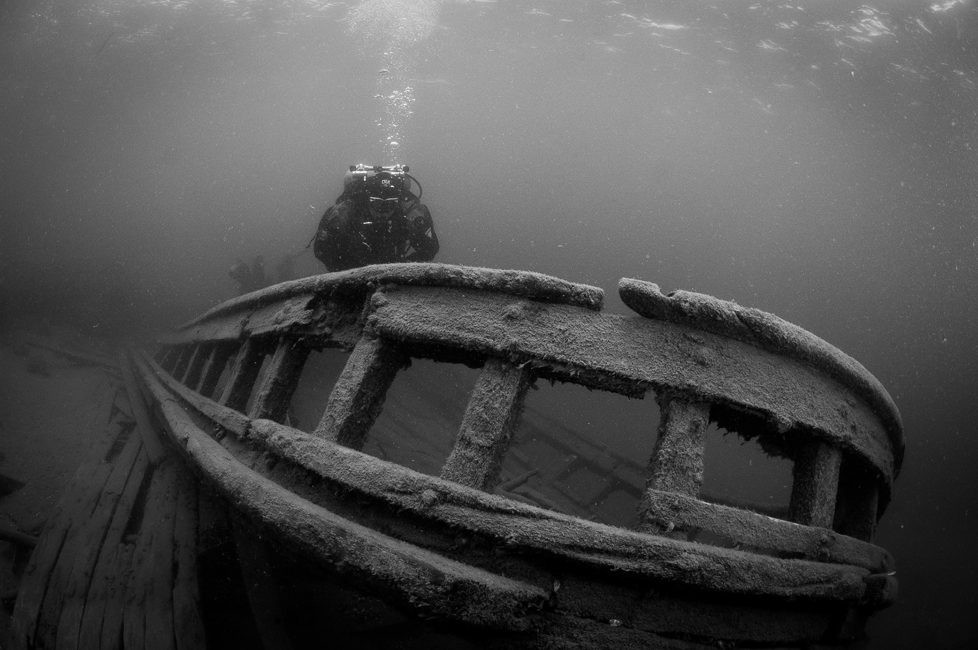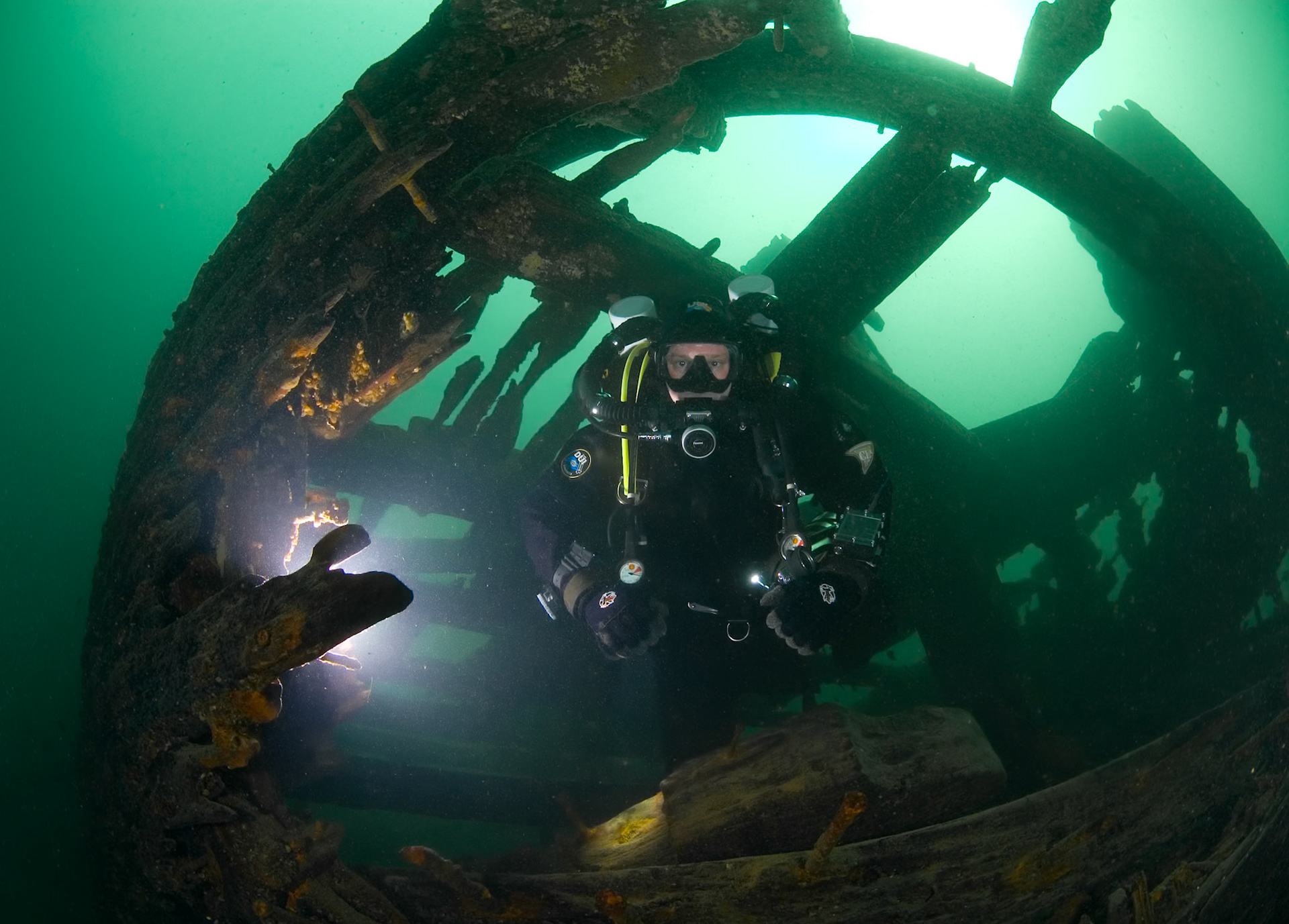 Plongeur à proximité de l'épave du Niagara II située à Tobermory, Ontario, Canada. |Diver near a the Niagara II wreck located in Tobermory, Ontario, Canada.